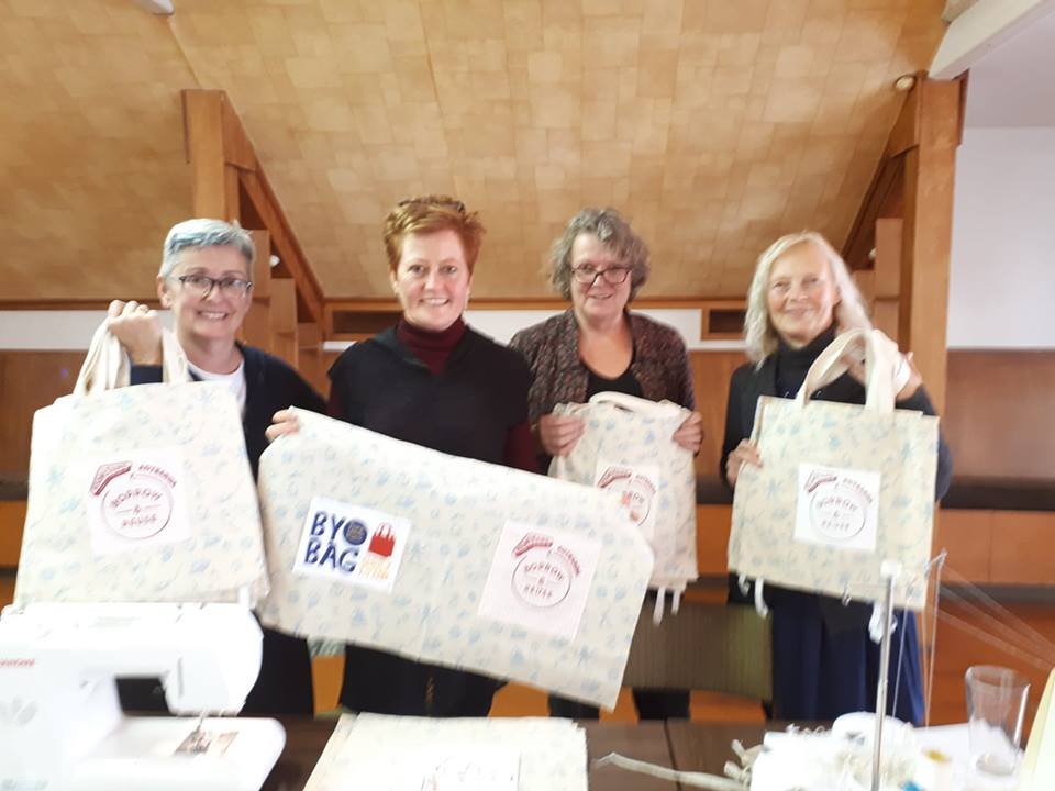 Over 100 “BYO Bags Grey Lynn” have been sewn by our team with more than 70 donated so far to help businesses in the West Lynn and Richmond Rd retail areas become Plastic Bag Free! More bags were given away at the Grey Lynn Farmers Market on 1st July 2018 for the worldwide Plastic Bag free day.